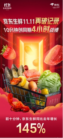 尽管深秋寒意逼人,但11.11的购物狂欢却让人热情似火。今年的11.11开门红,京东生鲜再传佳绩,10月31日晚8点开始后的短短10分钟就实现了去年同期4小时战绩,整体成交额同比增长145%。