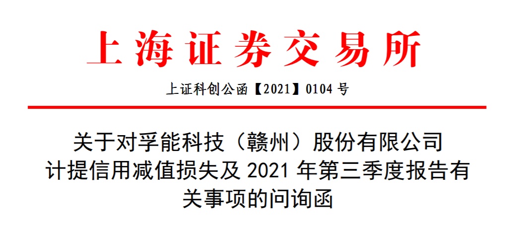 上交所提出,请孚能科技收到问询函后立即披露,并于五个交易日内披露对问询函的回复,积极回应投资者关切,做好信息披露工作。公司保荐机构应就上述问题进行认真核查并发表明确意见。