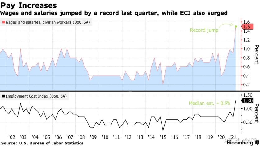 据悉,美国9月核心PCE物价指数同比增长3.6%,预期3.7%,前值3.6%,继续为1991年来的最高记录。在通胀高企的同时,企业的雇佣成本增速创下二十年来的最高记录。