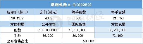 智通财经APP获悉,11月1日,微创机器人-B(02252)配售结束。配售招股价36-43.2港元,最终定价43.2港元,每手21,750港元。
