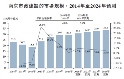 另外值得一提的是,不论是南京的园林绿化行业还是市政建设行业,未来几年的收入增速均将放缓。根据弗若斯特沙利文的报告,南京市的园林绿化行业的整体规模预计于2020年至2024年间会以4.4%的复合年增长率保持增长,但这一增速较2014年至2020年的5.9%已有所趋缓。反观南京的市政建设行业,未来几年的增速亦将由此前的4%降至3.4%。