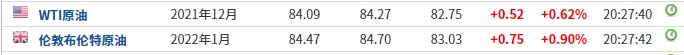 截至发稿,WTI原油涨0.62%,报84.09美元/桶。布伦特原油涨0.90%,报84.47美元/桶。