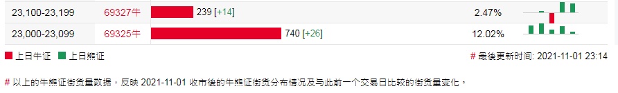 智通财经APP获悉,截至11月2日,恒指最新的牛熊街货比例为59:41。