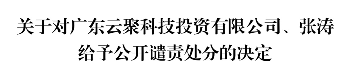 对于广东云聚科技投资有限公司、张涛的上述违规行为及给予的处分,深交所将记入上市公司诚信档案,并向社会公开。