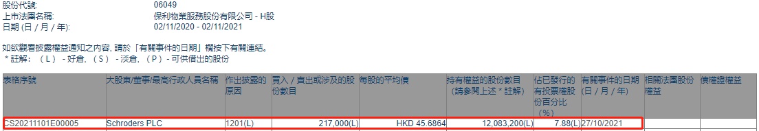智通财经APP获悉,香港联交所最新资料显示,10月27日,Schroders PLC减持保利物业(06049)21.7万股,每股作价45.6864港元,总金额约为991.39万港元。减持后最新持股数目为1208.32万股,最新持股比例为7.88%。