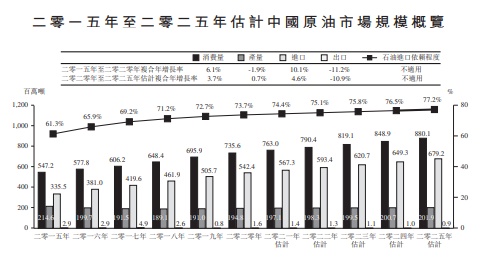 公司以广东省为发展的基地,主要从事批发油品和其他石化产品,买卖的油品包括成品油、燃料油、以及其他石化产品。我国成品油市场主要由三大国有巨头掌控,但由于近些年成品油的生产和消费增多,市场上的私营经销商数目也相应增多。公司在广东省五大私营成品油经销商中,排名第三,市占率为1.5%。