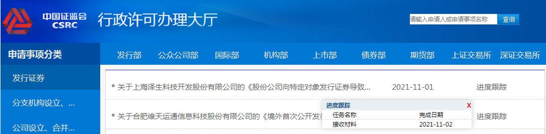 证监会:合肥维天运通信息科技股份有限公司境外首次公开发行股份申请已获接受材料