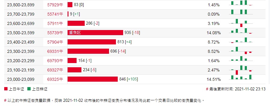 智通财经APP获悉,截至11月3日,恒指最新的牛熊街货比例为55:45。