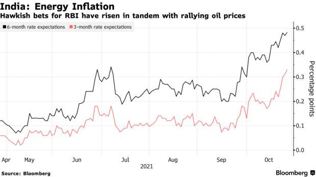 原油价格飙升加剧了人们对这个石油进口国通胀加速的担忧。印度央行(Reserve Bank of India)上月出人意料地宣布将停止购买债券,这也被视为政策正常化的前兆。该国债券在 10 月份给投资者带来了 1.2% 的损失,连续第二个月下跌。