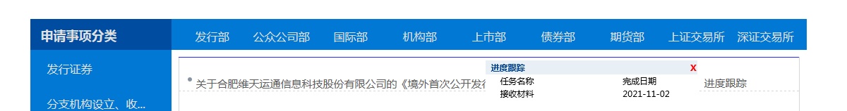 智通财经APP获悉,2021年11月2日,中国证监会国际部披露接收了合肥维天运通信息科技股份有限公司(简称“维天运通”)所提交的《境外首次公开发行股份(包括普通股、优先股等各类股票及股票派生的形式)审批》材料。若获得受理,维天运通或很快在港交所递交招股书。