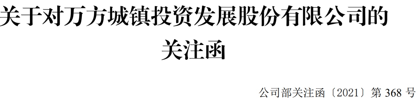 智通财经APP获悉,11月3日,深交所向万方城镇投资发展股份有限公司(*ST万方,000638.SZ)发出关注函。关注函指出,2021年8月26日,深交所发出关注函要求公司说明控股股东北京万方源房地产开发有限公司将其持有公司26%股份表决权无偿委托给白山市惠德实业有限责任公司行使的合理性、商业实质、是否存在股价炒作情形、相关方是否构成一致行动关系、是否刻意规避履行要约收购义务等事项,并要求公司在2021年9月2日前回函,将有关说明材料报送并对外披露,截至目前公司及中介机构仍未提交回函并对外披露。