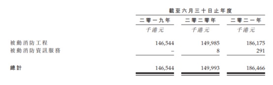 从收入结构上来看,怡俊集团的收入来源也相对较为简单,主要来自于被动消防工程及被动消防信息服务。近三个财年内,几乎所有的收益来自该公司作为项目分包商提供的被动消防工程。