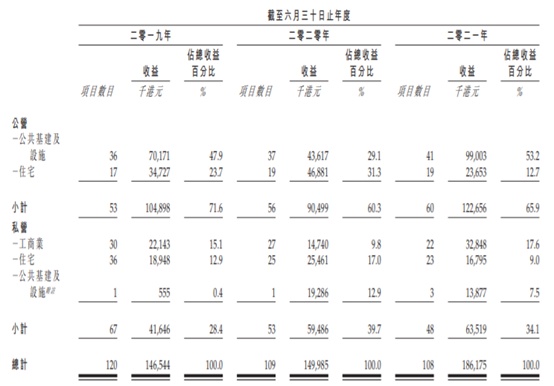 2019-2021财年内,公司分别拥有120个、109个及108个项目,并参与多个知名项目,各项目的合约金额均超过1000万港元,包括位于西九龙的高速铁路、位于九龙的购物艺术馆、位于启德的邮轮码头、位于启德的体育园及位于香港机场的商场等项目。