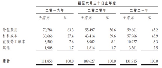 从成本方面考虑,香港工程的承包商一直面对成本上涨的问题。尽管怡俊的收益与年俱增,但和收益的增速相应的服务成本也由2019财年的1.12亿港元增长至2021财年的约1.31亿港元。其中包括将基本稳定在5000万港元以上的分包费用以及逐年递增的材料成本。同时,公司的直接劳工成本亦有相应的上涨,於2019财年的850万港元增长至2021财年约1092.7万港元。