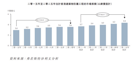 从行业层面来看, 2015-2020年,香港建筑物防护工程的市场规模(以总价值计)由约30亿港元增加至36亿港元,复合年增长率约为3.7%。增长主要受土地及物业供应增加以及强制验楼计划推出带动对建筑物防护工程的意识增加。建筑工程项目不断实施预期将刺激对建筑物防护工程的需求,市场规模预期于2025年将达约44亿港元,于2021年至2025年的复合年增长率约为4.4%。