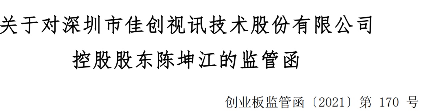 智通财经APP获悉,11月3日,深交所向深圳市佳创视讯技术股份有限公司(佳创视讯,300264.SZ)控股股东陈坤江发出监管函。监管函指出,陈坤江为佳创视讯控股股东,2019年12月21日,佳创视讯披露《简式权益变动报告书》,称自2015年7月1日至2019年12月20日,陈坤江的持股比例由 28.48%变动至25.24%;2021年6月11日,佳创视讯披露《简式权益变动报告书(一)》,称自2019年12月21日至2021年6月10日,陈坤江持股比例累计变动达到7.18%。自2015年7月1日起,陈坤江在持股比例累计变动达到5%时,未及时提交书面报告并披露权益变动报告书,也未停止卖出佳创视讯股份。陈坤江此举违反相关规定,被深交所出具监管函。