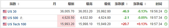 科技股方面,苹果(AAPL.US)盘前涨0.13%,Meta Platforms(FB.US)盘前跌0.03%,亚马逊(AMZN.US)盘前跌0.08%,微软(MSFT.US)盘前涨0.36%。