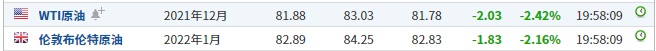 截至发稿,WTI原油跌2.42%,报81.88美元/桶。布伦特原油跌2.16%,报82.89美元/桶。