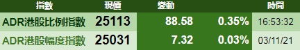 智通财经APP获悉,周三美股三大指数集体收涨,港股ADR指数上涨,按比例计算,收报25113点,涨88.58点或0.35%。