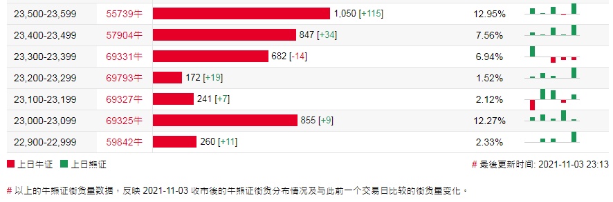 智通财经APP获悉,截至11月4日,恒指最新的牛熊街货比例为60:40。