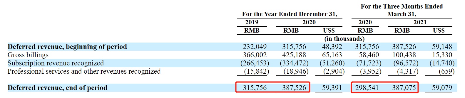 得益于企业客户数量的增加,群核科技的业绩实现了快速增长。2020年时,该公司的企业客户数量从11624增长60%至18592,期内的总收入增长25%至3.53亿元。2021年第一季度,群核科技的企业客户数量为20806家,同比增长69%,这推动公司期内整体收入增长33%至1亿元。从递延收入指标也能看出群核科技收入增长的持续性,2020年时,该公司的递延收入为3.88亿元,同比增长22.78%;2021年第一季度的递延收入为3.87亿元,同比增长29.43%。