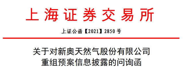 上交所提出:请新奥股份于2021年11月12日之前,针对上述问题书面回复相关部门,并对重大资产重组预案作相应修改。