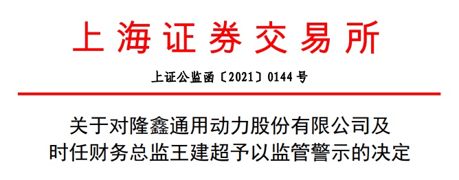 智通财经APP获悉,11月4日,上交所对隆鑫通用动力股份有限公司(隆鑫通用,603766.SH)及时任财务总监王建超予以监管警示。经查,隆鑫通用在公司控股子公司广州威能机电有限公司的下游客户东旭集团发生债务违约的情况下,未准确评估、判断相关事项的影响金额,致使在 2020 年年报中未准确列报应收账款与计提坏账准备科目,相关财务信息披露不准确。