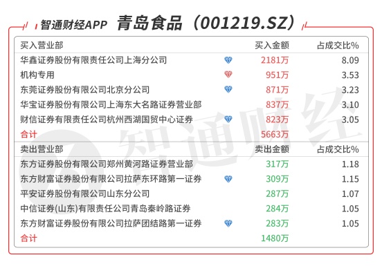 青岛食品(001219.SZ):多主力现身龙虎榜,机构席位对倒买入854万元,买一是知名游资的席位买入2181万元,买三是知名游资的席位买入871万元,当日净买入4715万元,该股是次新股,换手率高达38%,筹码锁定良好,压力位在近期高点36.28元。