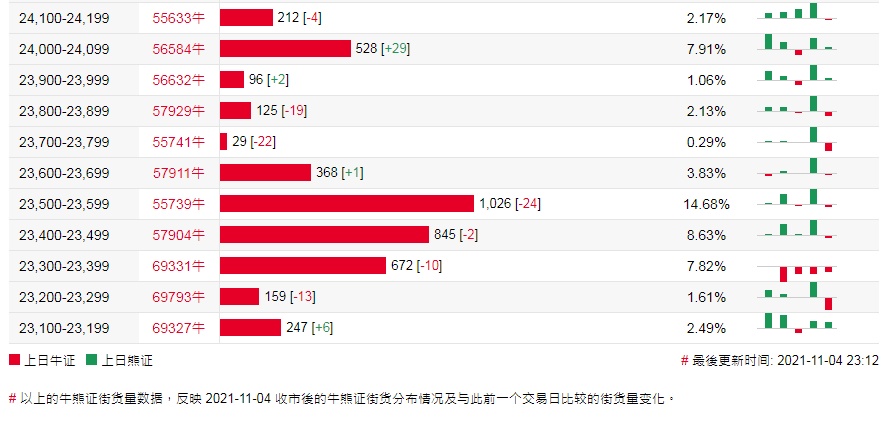 智通财经APP获悉,截至11月5日,恒指最新的牛熊街货比例为62:38。