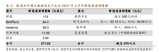 除了监管推动国内疫苗行业集中度以外,新冠疫苗的快速上市,也会拉大各疫苗企业之间的距离,新冠疫苗的快速上市为各大企业赚取了极为丰厚的现金流。数据显示,辉瑞与BioNTech公司合作,2021H1新型冠状病毒mRNA疫苗实现营收113亿美元,BioNTech新冠疫苗销售额84.4亿美元,Moderna、阿斯利康、强生销售额分别为59.3、11.7、2.6亿美元,大型企业2021年上半年新冠疫苗销售额合计271亿美元,而2020年全球疫苗产值不过342亿美元。国内来看,2021年上半年预计科兴和国药出售新冠疫苗获得的利润超过500亿元,智飞、康希诺、复星医药分别实现销售额53.1亿元、20.6亿元、超过5亿元。