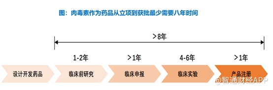 尽管还有7款肉毒素产品在申请资质进程中,但由于肉毒素准入门槛较高,从立项到获批最少需要八年时间,若直接引入海外认证产品从临床试验到获批也至少需要五六年时间。因此在较长时间内,国内的肉毒素竞争格局都会相对稳定,已获批上市的几款有望实现快速放量。