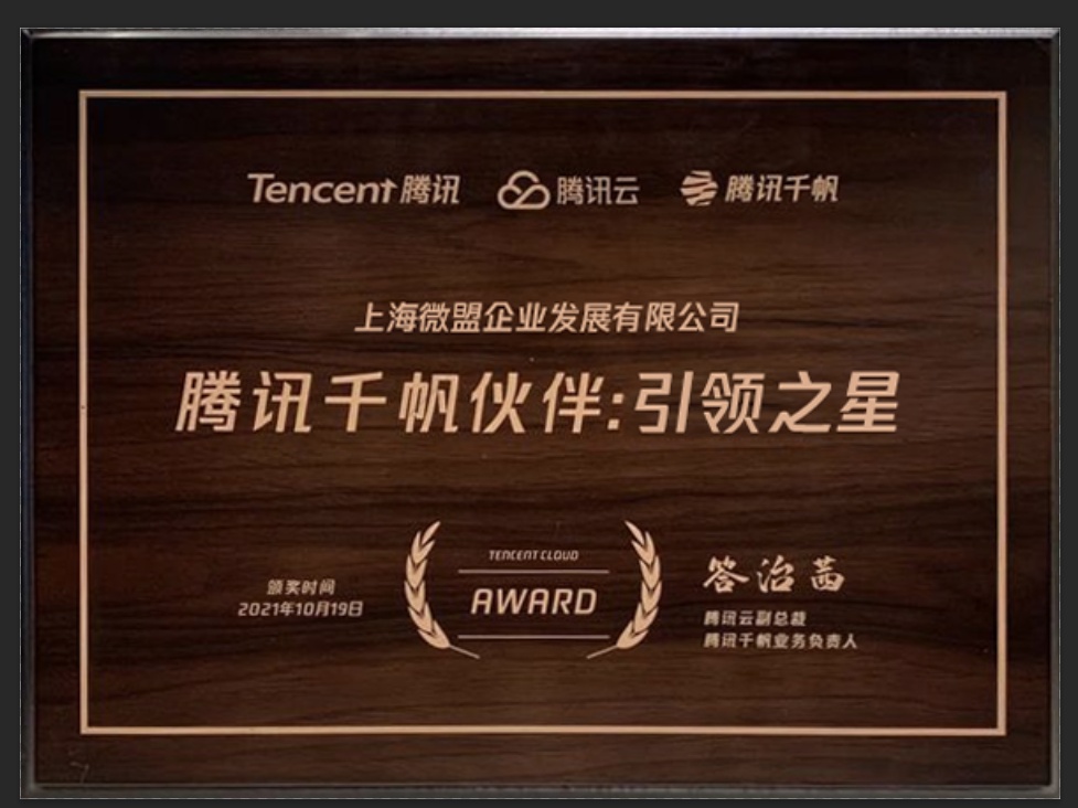 微盟集团获评“腾讯千帆伙伴:引领之星”