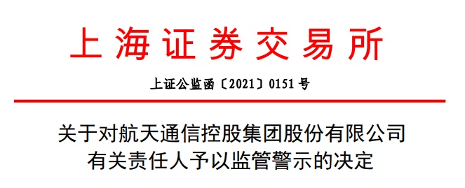 上交所做出如下监管措施决定:对航天通信控股集团股份有限公司时任副总裁祝学君、王福军、姜明生、于康成、王群予以监管警示。