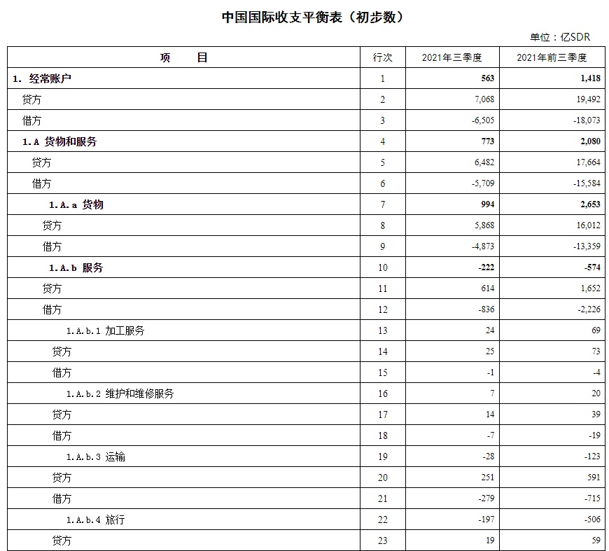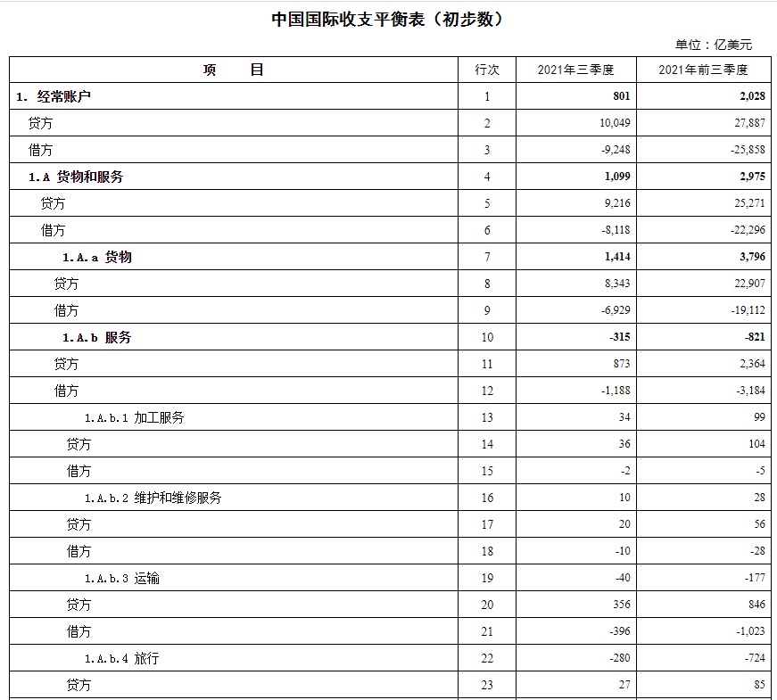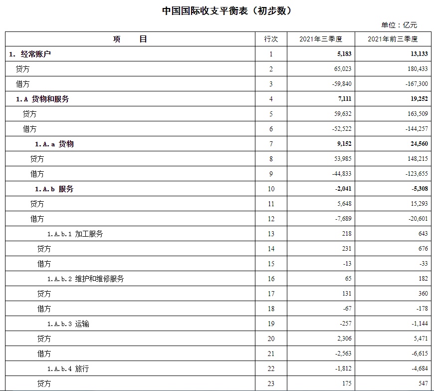 国家外汇管理局公布2021年三季度及前三季度我国国际收支平衡表初步数
