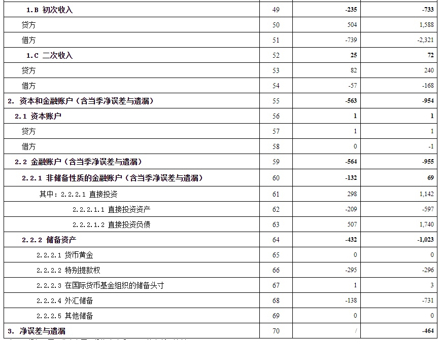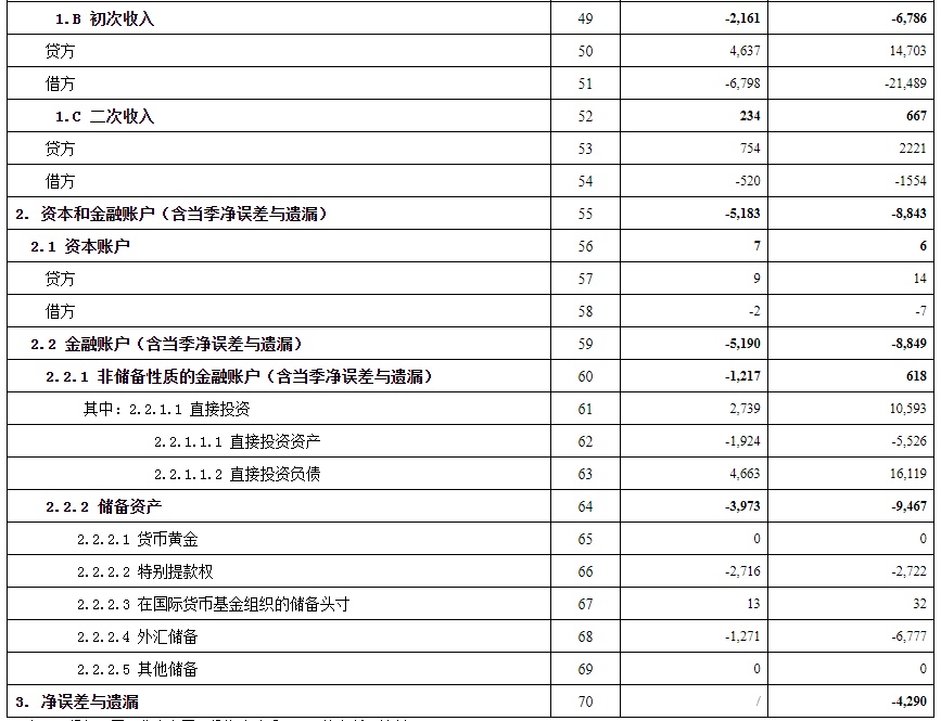 按SDR计值,2021年前三季度,我国经常账户顺差1418亿SDR,其中,货物贸易顺差2653亿SDR,服务贸易逆差574亿SDR。资本和金融账户中,直接投资顺差1142亿SDR,储备资产增加1023亿SDR。
