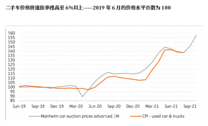 最新就业成本飙升的事实表明,通胀压力不再只影响商品部门,而是越来越多地渗透到服务部门。随着住房成本急剧上升、能源价格走高以及二手车价格因新车供应短缺而受到二次影响,荷兰国际集团预计随着核心通胀率上破5%,整体通胀率将在今年年初突破6%。