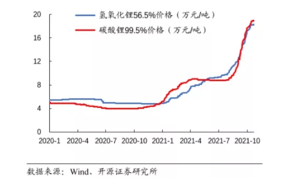三季度电池厂商的利润承压主要还是由于原材料的高价位,而今年最上游锂资源碳酸锂和氢氧化锂价格上涨主要集中在有两个时期,第一个时期是年初的1-3月份,第二个时期则是三季度的8-9月份,尤其是9月份。4-7月份碳酸锂价格相对平缓,氢氧化锂价格也只是稍微补涨前期的一部分。所以三季度原材料价格的大涨还是给电池厂商的利润带来不小的压力,但是时间滚动到四季度,目前来看10月份原材料的涨价趋势并未停止,如果四季度电池厂商没有相应的价格向下传导的动作,Q4业绩或依旧面临承压的局面。