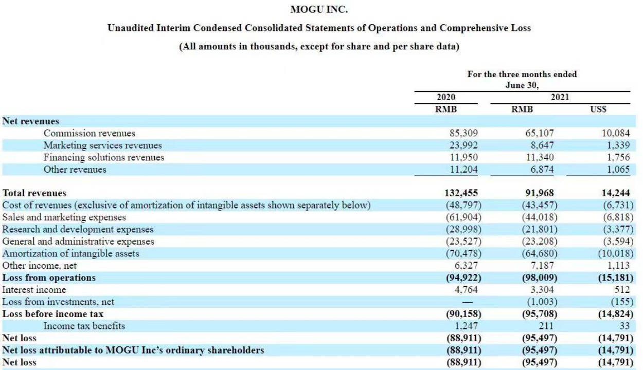 不过相比于在双十一里的“冷清”,或许业绩和股价的颓势才更令投资者揪心。先来看蘑菇街,根据其早前披露的2022财年第一季度“成绩单”,期内公司营收下降超过三成,仅为9196.8万元;归属于公司普通股股东的净亏损则达到9549.7万元。