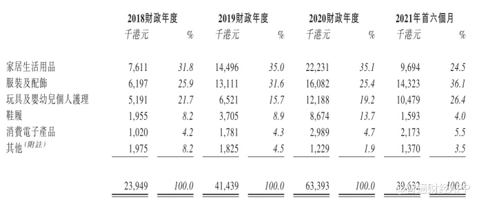 其中,2018-2020年度、2020年首六个月及2021年首六个月,以由电商业务存货成本及存货减值拨备组成的已售存货成本占收比分别达34.54%、30.92%、23.51%、27.13%、22.35%;由薪金、津贴及其他僱员福利组成的雇员福利开支占收比分别达21.34%、21.06%、18.13%、21.43%、24.12%。