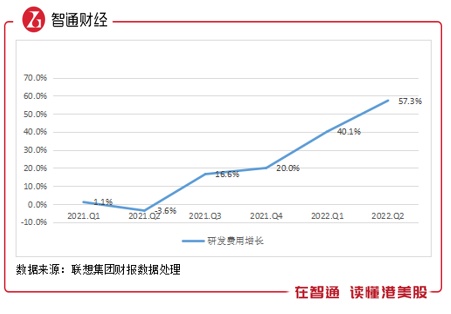 联想集团非常重视科技的研发投入,2021财年研发费用为14.54亿美元,相比于2010财年增长了5.8倍,复合增长率达到19%,2022财年上半年,研发费用增长57.3%,连续两个季度超过40%。按照目前的研发投入进度,该公司“未来三年研发费用翻倍”的承诺,或可能提前实现。