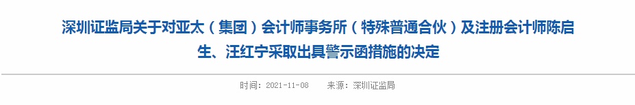 深圳证监局表示,亚太(集团)会计师事务所及注册会计师陈启生、汪红宁可在收到本决定书之日起60日内向中国证券监督管理委员会提出行政复议申请,也可以在收到本决定书之日起6个月内向有管辖权的人民法院提起诉讼。