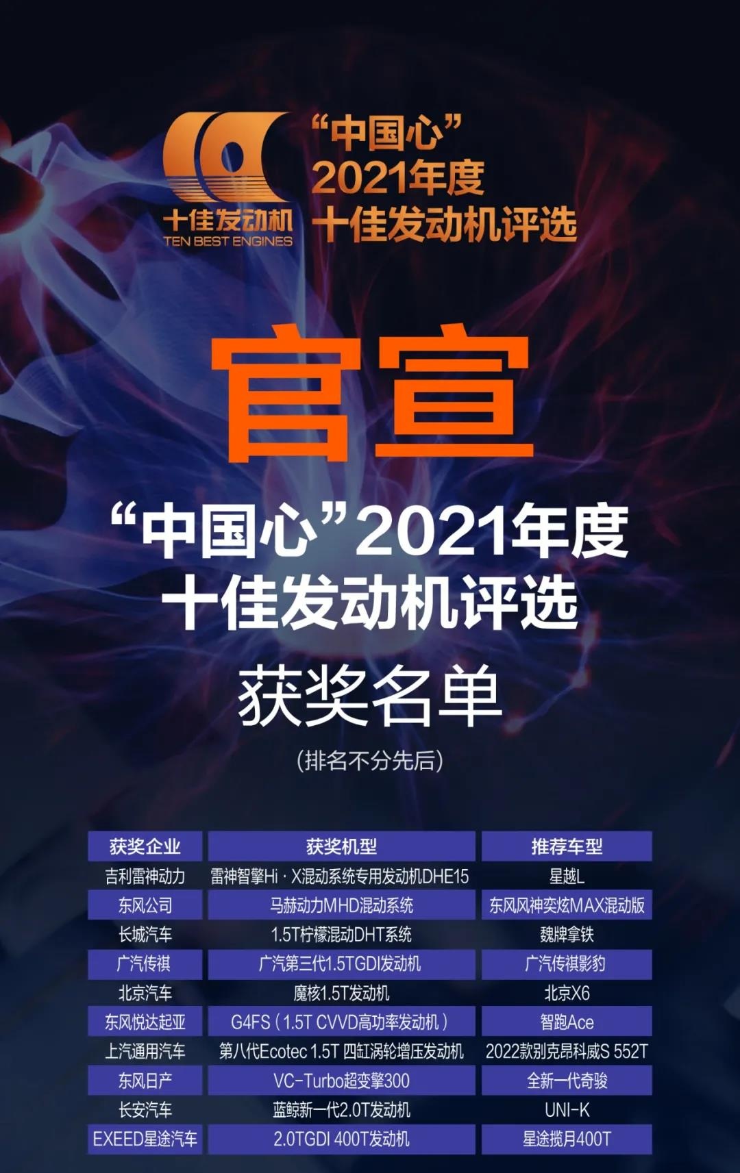 智通财经APP获悉,11月8日,“中国心”2021年度十佳发动机评选结果正式出炉。北京汽车(01958)魔核动力1.5T发动机,最终斩获第十六届“中国心”十佳发动机大奖。同时获奖的还有吉利、长城、东风、长安、东风日产、上汽通用等。从获奖榜单来看,中国自主品牌动力水平已全面崛起,中国“动力”已提升至新高度。