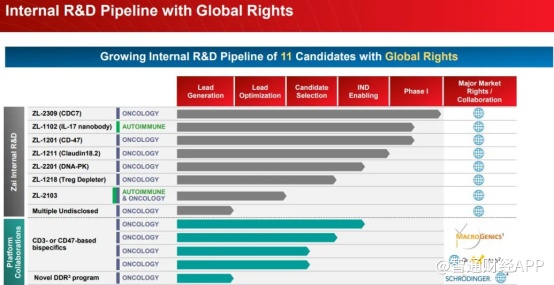 智通财经APP了解到,在此前的半年报中,再鼎医药披露了其管线研发的最新情况。截至上半年,再鼎医药已有11个拥有全球权益的在研产品。在产品方面,再鼎主要披露了其三个自研产品的研发进展,分别 IL-17新型人源纳米抗体,靶向CD47的经改良以降低效应物功能的人源化IgG4单克隆抗体ZL-1201,以及首次披露的靶向CDC7的ZL-2309。
