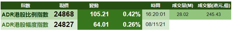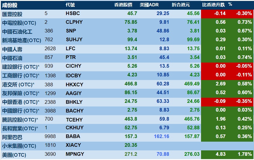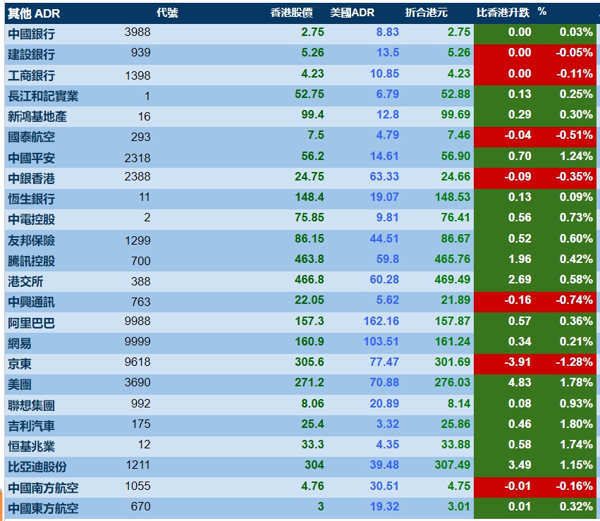 智通财经APP获悉,周一美股三大指数齐涨,港股ADR指数上涨,按比例计算,收报24868点,升105.21点或0.42%。