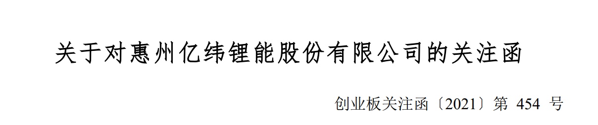 深交所提出:请亿纬锂能就上述事项做出书面说明,在 2021 年 11 月 11 日前将有关说明材料报送相关部门并对外披露,并抄送广东证监局上市公司监管处。