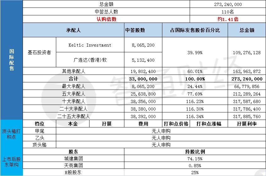 国际配售中签总人数未披露,认购倍数约1.41倍。