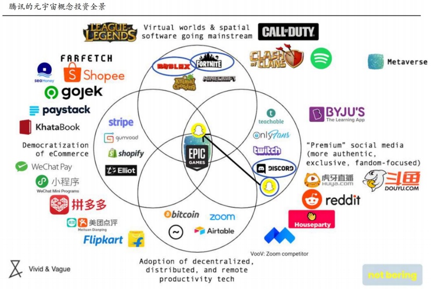 截至今年10月,腾讯直接或间接投资了67家游戏公司,其中就包括今年1月对Roblox投资5.2亿美元,而游戏被认为是元宇宙的入口之一。同时,腾讯创始人马化腾于2020年底还提出“全真互联网”概念,概念中的“由实入虚”的内容可谓与“元宇宙”概念有所重合。