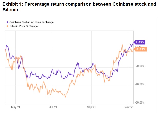 首先,需要认识到Coinbase股票和比特币是两种完全不同的投资形式。Coinbase股票代表着是直接对一家企业(为加密经济提供端到端金融基础设施和技术)的所有权,Coinbase的股东通常希望获得资本收益形式的回报。长期来看,和其他成熟公司一样,Coinbase可能也会向股东派发股息。相比之下,比特币是一种更复杂的资产类别,是一种去中心化的替代数字货币。投资者通常会从比特币价值的升值中获益,这可能是由于全球对这种数字货币的整体接受程度变得更高。