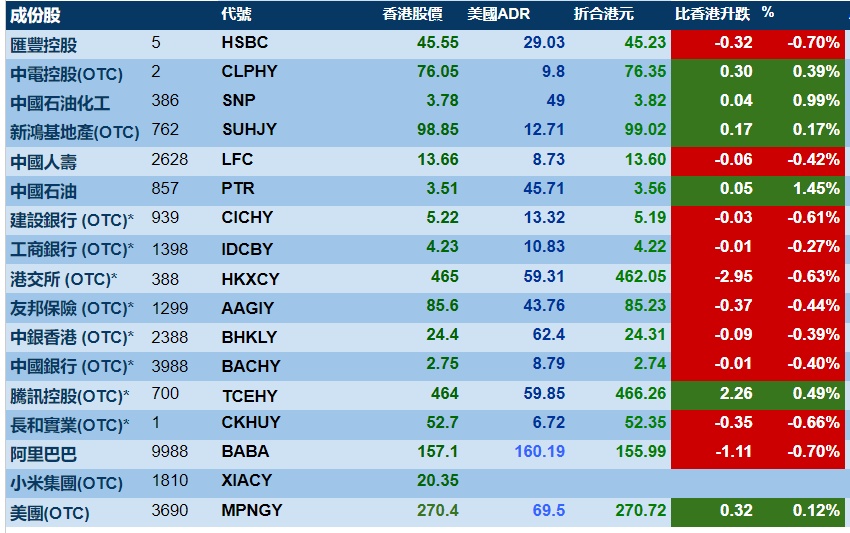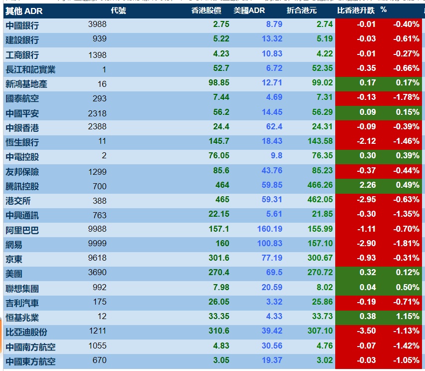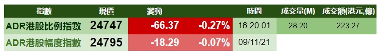 智通财经APP获悉,周二美股三大指数齐跌,港股ADR指数下跌,按比例计算,收报24747点,跌66.37点或0.27%。