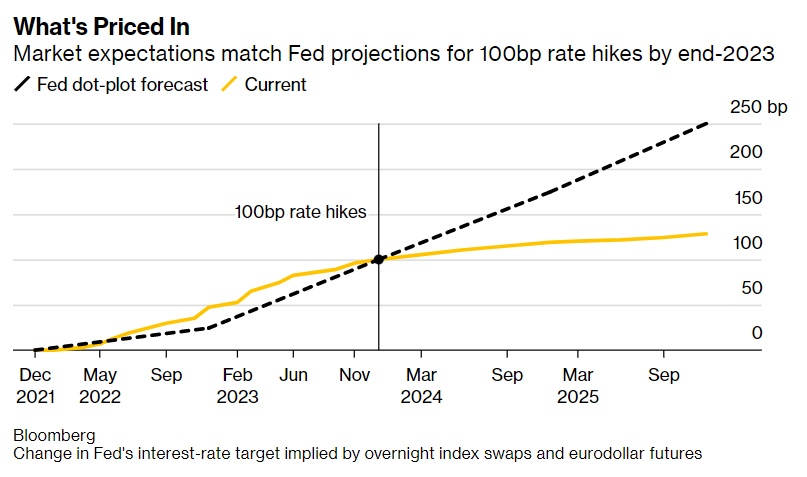 如果市场的交易员们预测是正确的,即美联储的加息周期将于明年开始,那么市场预计此次加息周期可能会在2023年底后尘埃落定。